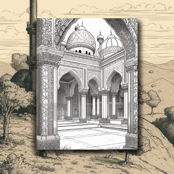 Islam Adult Coloring Book Grayscale Coloring Page Therapy