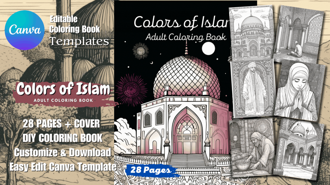 DIY Islam Adult Coloring Book with 30 Muslim Grayscale Coloring Pages - Instant Downlaod Printable Coloring Pages